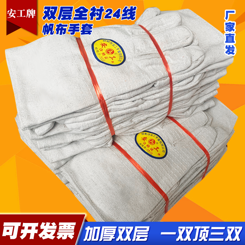 双层全衬24道线帆布手套机械电焊工耐磨加厚工作劳保防护用品厂